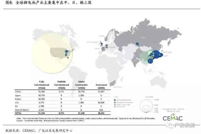 目前全球鋰電池的主要生產(chǎn)國為中國、日本及韓國。憑借產(chǎn)業(yè)優(yōu)勢和技術(shù)積累,松下、LG化學(xué)、三星SDI目前仍是鋰電池領(lǐng)域三大巨頭。根據(jù)BloombergNewEnergyFinace統(tǒng)計,2017年一季度全球動力電池出貨量5273MWh,其中三巨頭總計占比達(dá)62%。松下采用高鎳三元路線,封裝以圓柱形為主,其圓柱形電池能量密度世界領(lǐng)先,與特斯拉保持良好的合作關(guān)系,是動力電池行業(yè)的領(lǐng)導(dǎo)者;LG化學(xué)起步稍晚,電池正極主要是三元NCM,是海內(nèi)外公認(rèn)的軟包龍頭,擁有眾多優(yōu)質(zhì)客戶,包括現(xiàn)代、通用、雷諾、日產(chǎn)等,是動力電池行業(yè)的后起之秀;三星長期立足消費(fèi)類鋰電的研發(fā)生產(chǎn),技術(shù)積累深厚,發(fā)展大容量方形硬殼電池為主。近年來國內(nèi)CATL、比亞迪、國軒等企業(yè)也相繼完成了各自技術(shù)路線的初步探索,在產(chǎn)能規(guī)模上成為日韓動力電池巨頭有力的挑戰(zhàn)者。