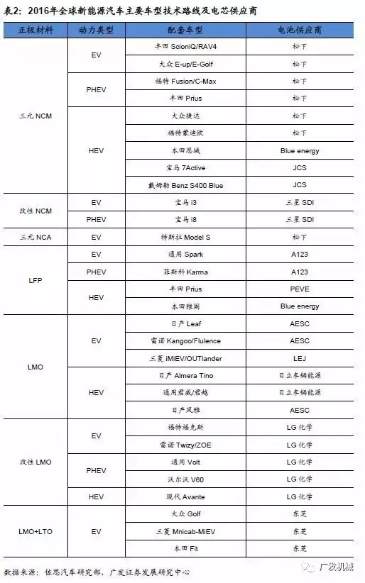 根據(jù)BloombergNewEnergyFinace 的統(tǒng)計,2017年第一季度,全球鋰電池出貨量(僅為混合動力汽車和純電動汽車用電池)為5273MWh,其中松下占比最多,為42%。2016年全球主流新能源汽車采用的正極材料主要有三元NCM、改性NCM、三元NCA、改性LMO等,主流的電池供應(yīng)商有松下、三星SDI、LG化學(xué)等。汽車企業(yè)與鋰電廠商的合作日益密切,綁定關(guān)系逐漸成型。鋰電池行業(yè)龍頭企業(yè)擴(kuò)產(chǎn)規(guī)劃明確。在市場及各國政策的雙重驅(qū)動下,一線動力電池廠商持續(xù)擴(kuò)產(chǎn)。