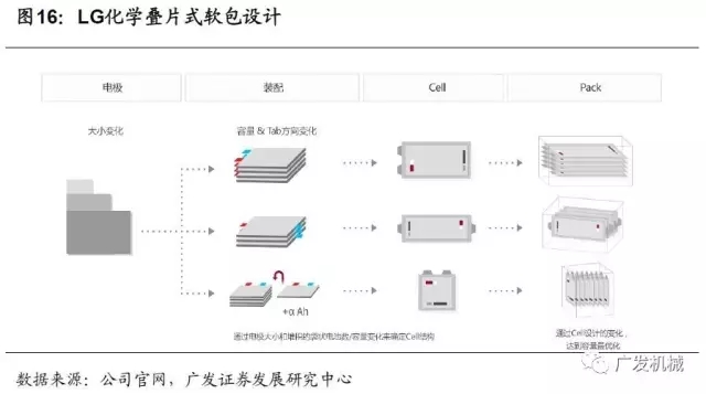 在技術(shù)上,LG化學(xué)正極采用的主要是三元NCM材料,在電池包裝方面,LG化學(xué)大部分采用疊片式軟包設(shè)計,是海內(nèi)外公認(rèn)的軟包龍頭企業(yè)。軟包鋰電池所用的關(guān)鍵材料—正極材料、負(fù)極材料及隔膜—與傳統(tǒng)的鋼殼、鋁殼鋰電池之間的區(qū)別不大,最大的不同之處在于軟包裝材料(鋁塑復(fù)合膜),這是軟包鋰電池中最關(guān)鍵、技術(shù)難度最高的材料。軟包電池的包裝材料和結(jié)構(gòu)使其擁有一系列優(yōu)勢。1)安全性能好,軟包電池在結(jié)構(gòu)上采用鋁塑膜包裝,發(fā)生安全問題時,軟包電池一般會鼓氣裂開,不會爆炸。2)重量輕,軟包電池重量較同等容量的鋼殼鋰電池輕40%,較鋁殼鋰電池輕20%。3)內(nèi)阻小,軟包電池的內(nèi)阻較鋰電池小,可以極大的降低電池的自耗電。4)循環(huán)性能好,軟包電池的循環(huán)壽命更長,100次循環(huán)衰減比鋁殼少4%~7%。5)設(shè)計靈活,外形可變?nèi)我庑螤?,可以更薄,可根?jù)客戶的需求定制,開發(fā)新的電芯型號。軟包電池的不足之處是一致性較差,成本較高,容易發(fā)生漏液,技術(shù)門檻高。