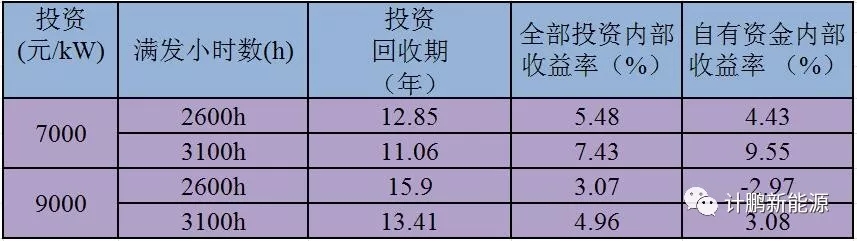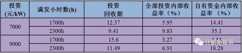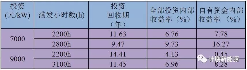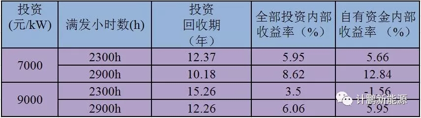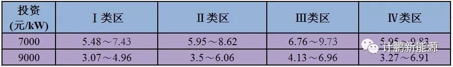 Ⅱ類電價區(qū)的滿發(fā)小時數(shù)在2300h-2900h之間。通過測算,經(jīng)濟性指標匯總結(jié)果匯總?cè)绫?所示: