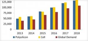 太陽能產(chǎn)業(yè)內(nèi)的年需求量水平將比第三方觀察機構(gòu)和各領(lǐng)先零部件供應(yīng)商所預(yù)計的更早地達(dá)到100GW。在2018年,太陽能產(chǎn)業(yè)將實現(xiàn)100GW以上太陽能組件出貨量,同時在2017年,這一數(shù)字將輕而易舉地超過90GW。