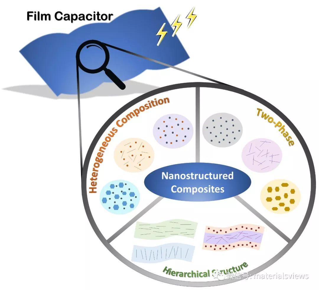 近日,美國賓夕法尼亞州立大學(xué)材料科學(xué)與工程系QingWang教授課題組與西安交通大學(xué)電力設(shè)備電氣絕緣國家重點(diǎn)實(shí)驗(yàn)室彭宗仁教授課題組合作,系統(tǒng)地評述了鐵電聚合物基納米復(fù)合電介質(zhì)在高能量密度電容儲能領(lǐng)域的最新研究進(jìn)展并對該領(lǐng)域未來的發(fā)展趨勢進(jìn)行了展望。文章系統(tǒng)化地介紹了具有零維、一維和二維納米結(jié)構(gòu)填料,表面改性納米填料,定向和分層結(jié)構(gòu)納米填料以及多種納米填料共同摻雜的鐵電聚合物基納米電介質(zhì)的制備方法,對電容儲能薄膜中不同納米結(jié)構(gòu)對材料的介電常數(shù)與損耗、擊穿強(qiáng)度、儲能密度與效率等性能的綜合影響進(jìn)行了總結(jié)、分析與討論。