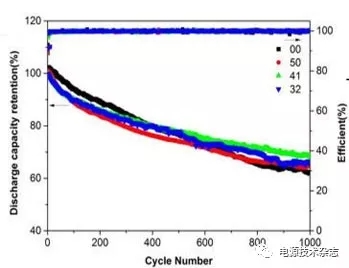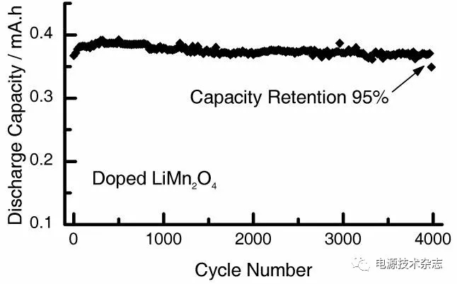 圖2 摻雜型LiMn2O4在鋅基鋰電池中的循環(huán)性能