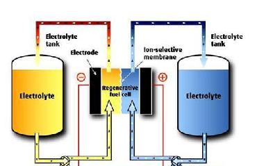 液流儲(chǔ)能電池的工作原理與常規(guī)蓄電池的活性物質(zhì)被包容在固態(tài)電極內(nèi)不同,液流電池的正、負(fù)極活性物質(zhì)主要存在于電解液中,通過(guò)送液泵流過(guò)液流電池,電池內(nèi)的正、負(fù)極電解液由離子交換膜隔開(kāi)。按其儲(chǔ)能介質(zhì)的不同也可分為釩電池、鈉硫電池、鋅溴電池等。這三種電池都具有液流電池的優(yōu)點(diǎn),但是也有其缺點(diǎn),例如釩電池和鈉硫電池的造價(jià)都較為昂貴,而且鈉硫電池還需要在高溫環(huán)境下運(yùn)行,會(huì)產(chǎn)生一定的安全問(wèn)題。