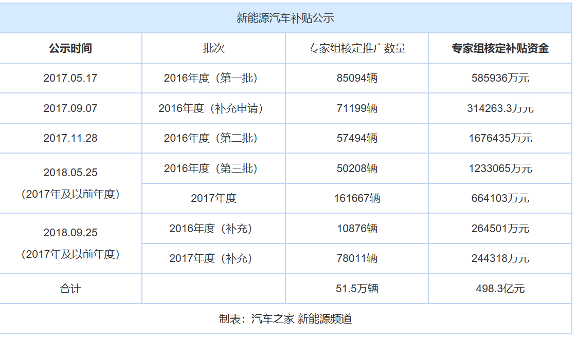 2016-2017年補貼,包括最新于9月25日公示的這批在內(nèi),工信部累計已經(jīng)發(fā)布5批,涉及新能源汽車51.5萬輛,補貼金額高達498.3億元。再加上地方補貼,新能源汽車的補貼累計發(fā)放超過千億元。(文/汽車之家 章漣漪)