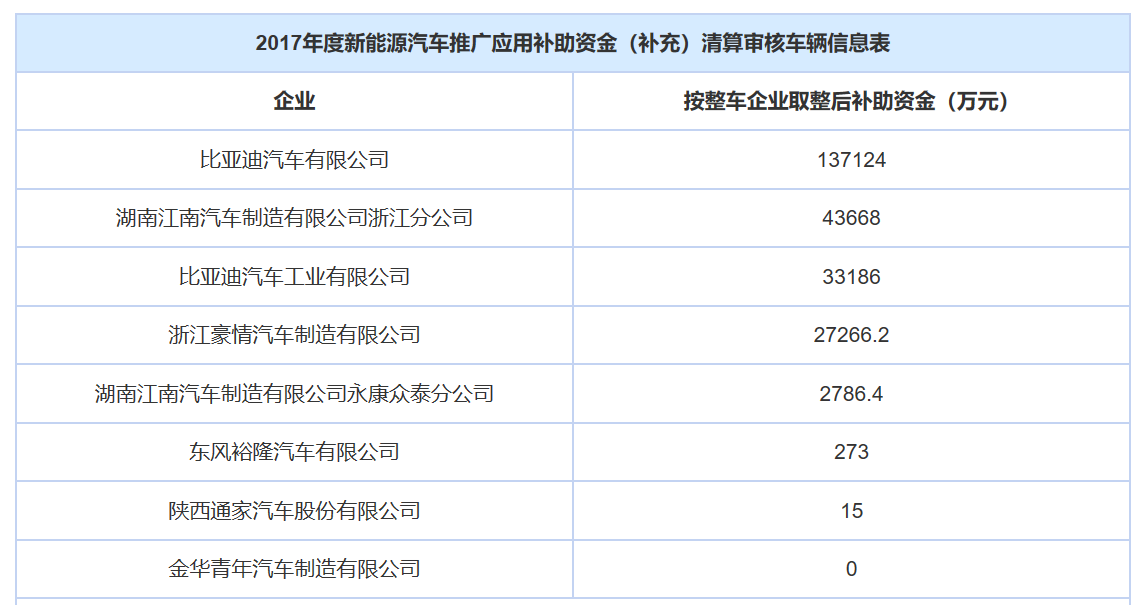 中國儲能網(wǎng)訊:9月20日,工業(yè)和信息化部通信清算中心組織專家對此前未審核的浙江省、陜西省、深圳市上報的新能源汽車補助資金申請材料進行了技術(shù)審查,形成了《關(guān)于2017及以前年度新能源汽車推廣應(yīng)用補助資金(補充)清算審核初審的報告》,并于9月25日對初審報告中的審核結(jié)果進行公示,經(jīng)審核,此次應(yīng)清算補貼資金約50.9億元。
