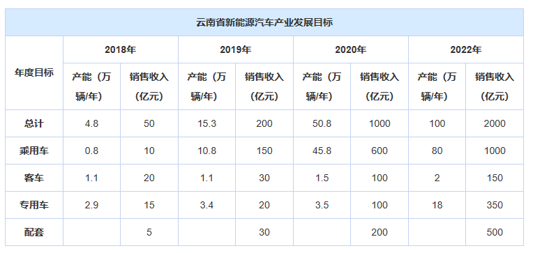 近年來,云南省一直在大力鼓勵(lì)推進(jìn)新能源車發(fā)展。今年6月,云南工信委發(fā)布《云南省新能源汽車產(chǎn)業(yè)發(fā)展及推廣應(yīng)用三年行動(dòng)計(jì)劃(2018-2020年)》(征求意見稿)指出,到2020年,云南省計(jì)劃形成年產(chǎn)50萬(wàn)輛新能源汽車生產(chǎn)能力,其中乘用車45萬(wàn)輛、商用車5萬(wàn)輛,形成年產(chǎn)動(dòng)力電池10Gwh的能力,實(shí)現(xiàn)年銷售收入1000億元。滇中城市群聚集發(fā)展格局基本成型,乘用車、客車、專用車等門類基本齊全,電池、電機(jī)、電控等關(guān)鍵配套基本完整,生產(chǎn)、銷售、運(yùn)營(yíng)、回收體系基本完善。力爭(zhēng)3年至5年內(nèi),全省形成年產(chǎn)100萬(wàn)輛新能源汽車生產(chǎn)能力,實(shí)現(xiàn)年銷售收入2000億元,形成完整產(chǎn)業(yè)鏈。(編譯/汽車之家 章漣漪)