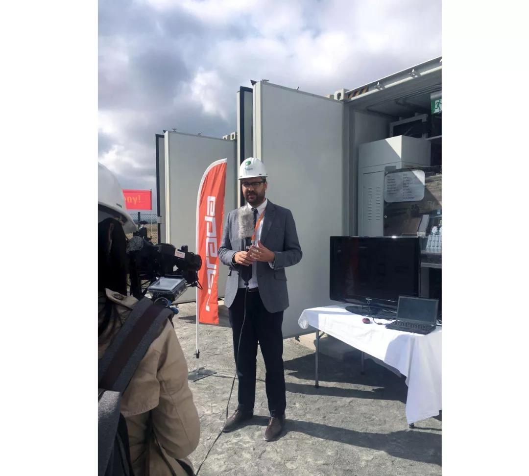 隨后,慶典來賓在南都電源總工程師吳賢章、Upside公司Rico博士、南都電源海外事業(yè)部總經(jīng)理鄭燕、儲能產(chǎn)品部總監(jiān)項海豐等的帶領(lǐng)下,參觀調(diào)頻儲能電站,詳細了解電站的運行模式和技術(shù)優(yōu)勢。嘉賓們對南都電源的方案表現(xiàn)出濃厚的興趣,對系統(tǒng)安全、運行安全和并網(wǎng)安全等方面的設(shè)計高度認可,并表達了強烈的合作意愿。EDF、ENEL等客戶及ALABC的代表等分別接受采訪,均對南都電源的技術(shù)和品質(zhì)給予了高度評價。