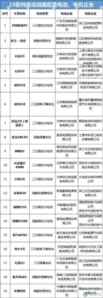 19款電動微面的電池由12家企業(yè)提供,其中4款由力神動力電池提供,2款由天勁新能源提供,2款由江蘇智航新能源提供,2款由星恒電源提供,其余9款有中航鋰電、寧德時代、鵬輝能源、三迅新能源、陽光新能源、光宇電源、天臣新能源、沃特瑪新能源,智行鴻遠汽車等提供。