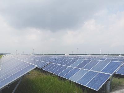 今年9月,記者來到海安走訪調查。在海安老壩港濱海新區(qū),天空蔚藍,松林滴翠,處處綠蔭蔥蔥。但隨著疾馳的汽車一路往東,那一抹綠色逐漸被錯落的現(xiàn)代化廠房、高聳的風車電機、密密麻麻的光伏電板所取代。