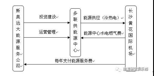 2012年新奧提出泛能網(wǎng)概念,做過的分布式能源項目有湖南長沙黃花機場項目(商業(yè)模式見圖3)、株洲神農(nóng)城項目、江蘇鹽城亭湖醫(yī)院項目等。泛能網(wǎng)的主要投資來源于設(shè)備投資,根據(jù)用能需求,規(guī)劃燃氣發(fā)電機組,溴化鋰余熱利用機組以實現(xiàn)多品味的余熱利用等。