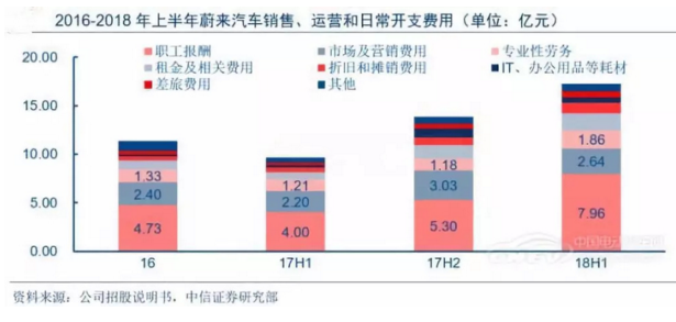 據(jù)此前蔚來(lái)招股書(shū),從2016年至2018年6月30日的兩年半時(shí)間內(nèi),蔚來(lái)的總收入為4599萬(wàn)元,而總營(yíng)業(yè)費(fèi)用達(dá)到了107.42億元,凈虧損109.2億元。其中,2016年、2017年、2018年上半年的支出分別為26.03億元、49.54億元、31.86億元;凈虧損分別為25.73億元、50.21億元、33.26億元。截至6月30日,蔚來(lái)的現(xiàn)金及現(xiàn)金等價(jià)物不足45億元。