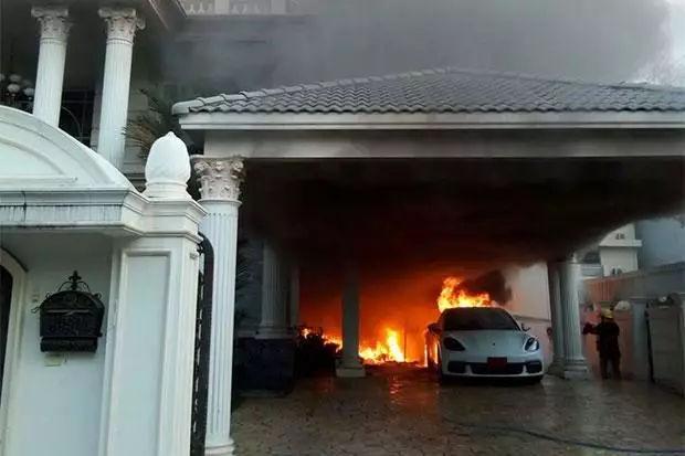 圖10,2018年,泰國(guó),夜間充電自燃的保時(shí)捷Panamera PHEV