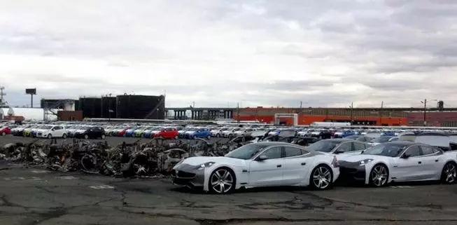 圖8,2012年,颶風(fēng)桑迪引起海水倒灌,停在海邊的Fisker Karma電動(dòng)跑車(chē)被海水浸入后燒毀大半