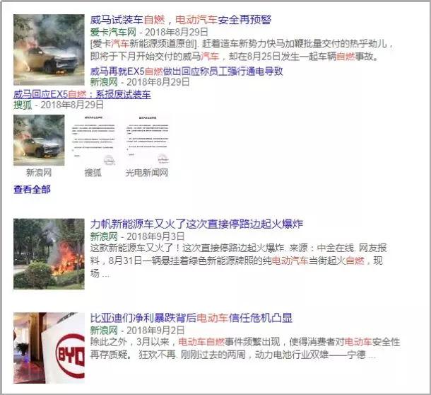 圖2,以“電動(dòng)汽車(chē) 自燃”為關(guān)鍵詞得到的谷歌新聞搜索結(jié)果