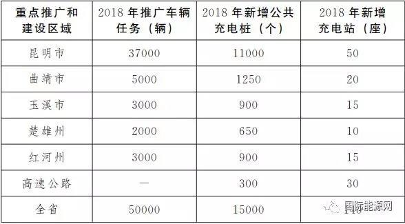 《方案》指出,2018年云南省要推廣新能源汽車5萬輛,新增公共充電樁1.5萬個,集中式充電站140座以上。