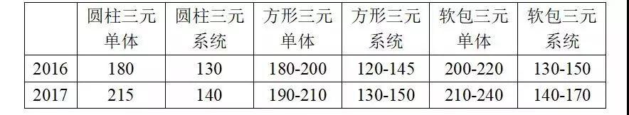 經(jīng)過(guò)一段時(shí)間的發(fā)展,磷酸鐵鋰和三元鋰電池的技術(shù)水平得到明顯提升。在成本方面,磷酸鐵鋰電池組價(jià)格從2017年年初的1.8-1.9元/Wh下降到年底的1.45-1.55元/Wh。三元?jiǎng)恿﹄姵匕鼉r(jià)格從年初的1.7-1.8元/Wh下降到年底的1.4-1.5元/Wh。