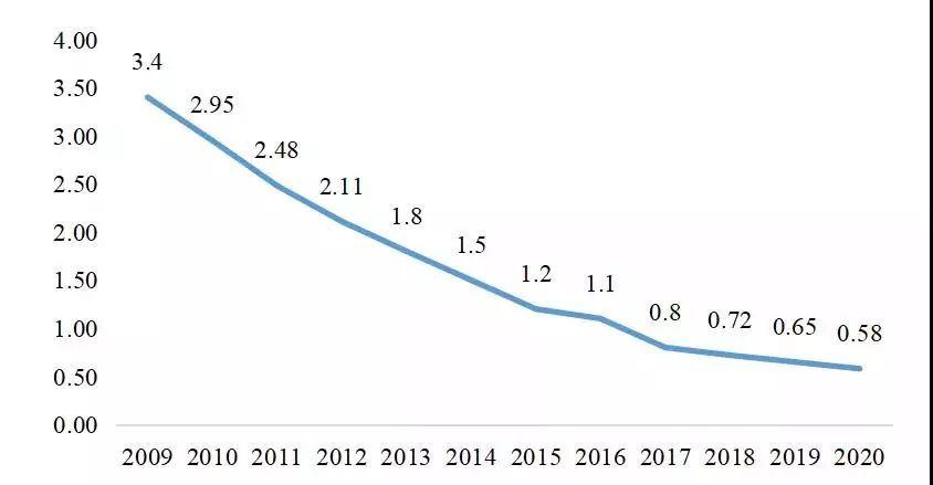 圖3 動(dòng)力鋰電池電芯成本44(單位:元/Wh)