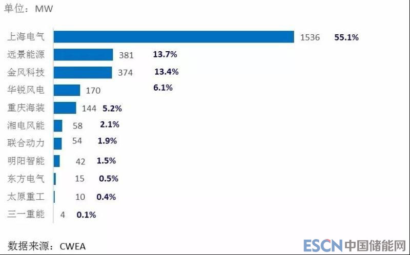 三、風(fēng)電機(jī)組制造商裝機(jī)情況