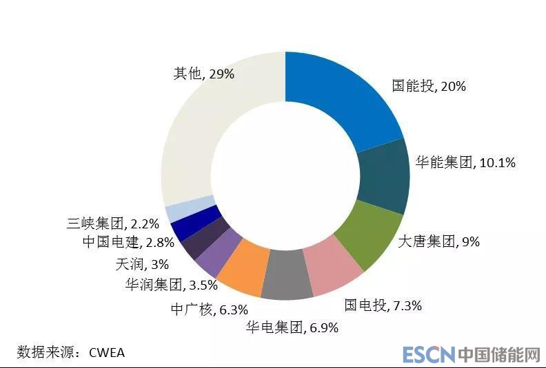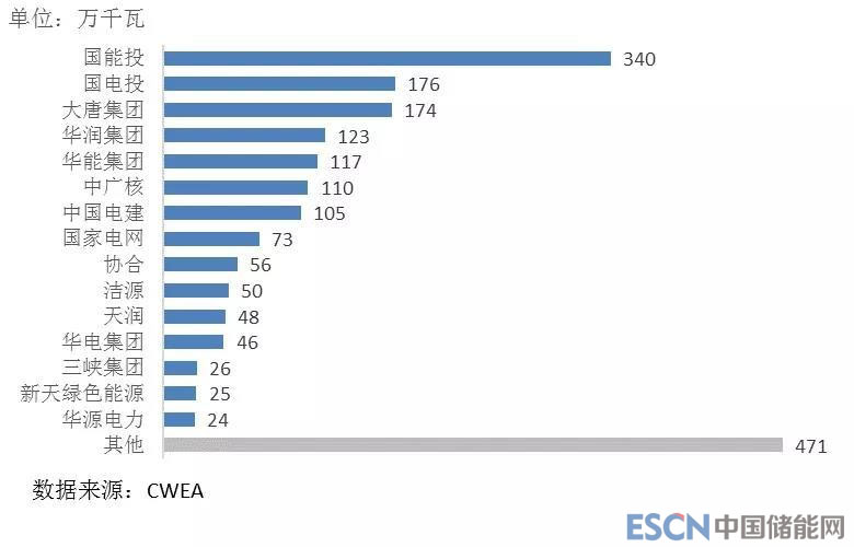 圖12 2017年中國(guó)風(fēng)電開(kāi)發(fā)企業(yè)新增裝機(jī)容量