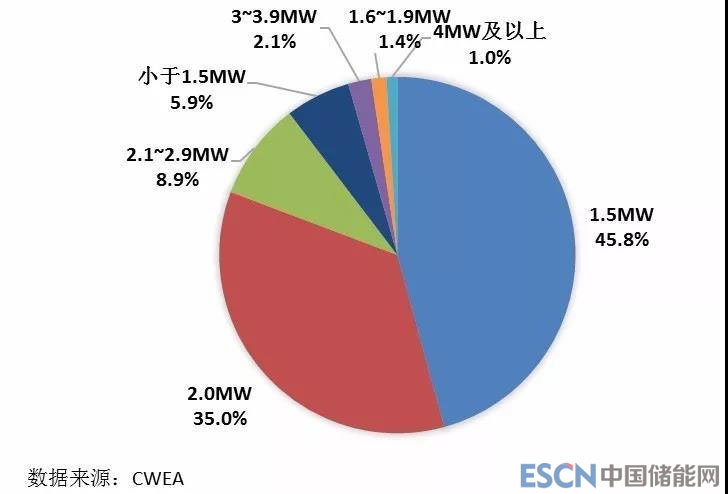圖10 2017年中國(guó)不同功率風(fēng)電機(jī)組新增裝機(jī)容量比例