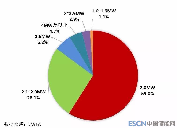 圖11 截至2017年底中國(guó)不同功率風(fēng)電機(jī)組累計(jì)裝機(jī)容量比例