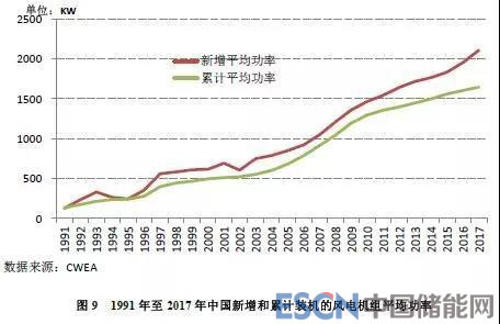 2017年,中國(guó)新增裝機(jī)的風(fēng)電機(jī)組平均功率2.1MW,同比增長(zhǎng)8%;截至2017年底,累計(jì)裝機(jī)的風(fēng)電機(jī)組平均功率為1.7MW,同比增長(zhǎng)2.6%。