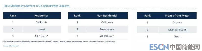 (按照區(qū)域來(lái)分,2018年第二季度,亞利桑那州、加利福尼亞州分別領(lǐng)導(dǎo)美國(guó)電表前、電表后儲(chǔ)能市場(chǎng))