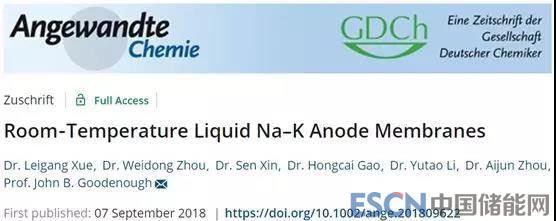 [9] Xue L, Zhou W,Xin S, et al. Room-Temperature Liquid Na-K Anode Membranes[J]. AngewandteChemie International Edition, 2018.