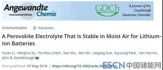 [5] Li Y, Xu H,Chien P, et al. A Perovskite Electrolyte That Is Stable in Moist Air forLithium-Ion Batteries[J]. Angewandte Chemie International Edition,2018,57(28):8587-8591.