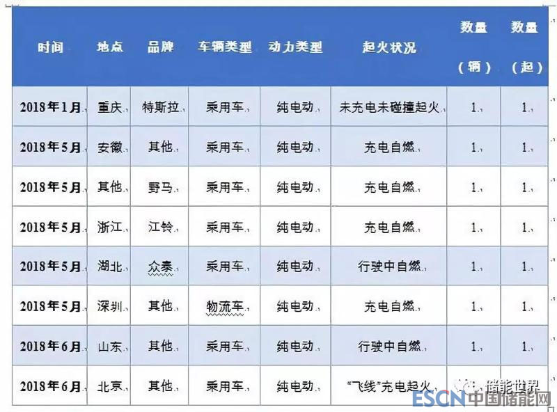 2018年1月-6月電動(dòng)車起火統(tǒng)計(jì)