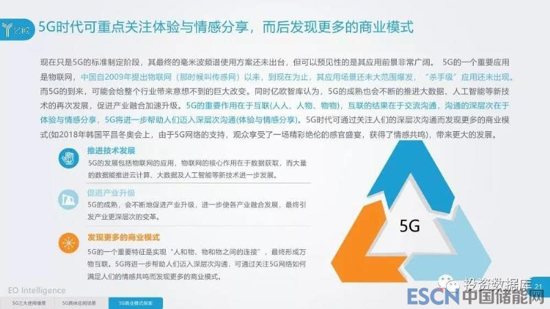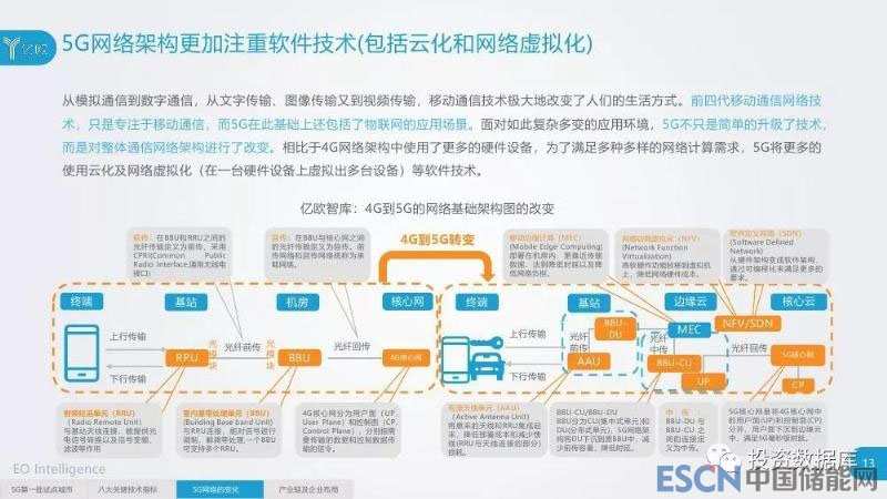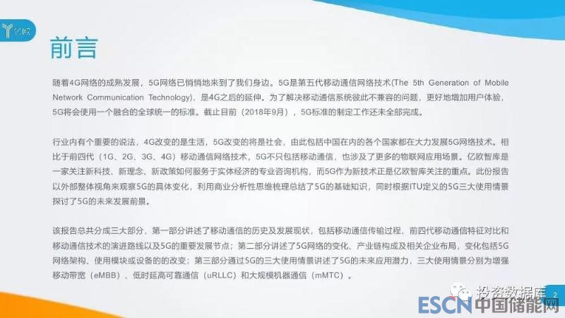 報告分為三個部分,第一部分講述了移動通信的歷史及發(fā)展現(xiàn)狀,包括移動通信傳輸過程、前四代移動通信特征對比和其技術的演進路線以及5G的重要發(fā)展節(jié)點;第二部分講述了5G網(wǎng)絡的變化、產(chǎn)業(yè)鏈構成及相關企業(yè)布局;第三部分通過5G的三大使用情景講述了5G的未來應用潛力。