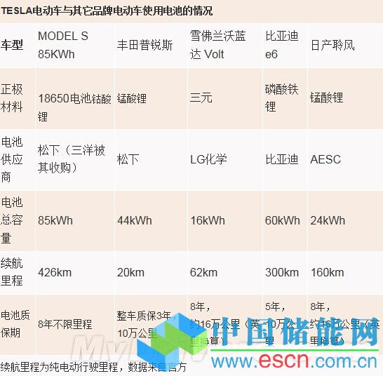 鈷酸鋰電池具有結(jié)構(gòu)穩(wěn)定、容量比高、綜合性能突出、但是其安全性差而且成本非常高,主要用于中小型號(hào)電芯,標(biāo)稱電壓3.7V。TESLA把這樣的電池組合到一起,安全性就成了一個(gè)很需要關(guān)注的問題,TESLA的工程師在電池包內(nèi)的保險(xiǎn)裝置分布到每一節(jié)18650鈷酸鋰電池,每一節(jié)18650鈷酸鋰電池兩端均設(shè)有保險(xiǎn)絲,當(dāng)電池出現(xiàn)過熱或電流過大時(shí),保險(xiǎn)絲會(huì)切斷,以此避免因某個(gè)電池出現(xiàn)異常情況(過熱或電流過大)時(shí)影響到整個(gè)電池包。那么,就此來看,鈷酸鋰電池雖然本身存在著缺陷,但是在TESLA的工程師的包裝上安全性基本上可以忽略。顯然,這樣的解決方案還是很適合在純電動(dòng)汽車上發(fā)展。