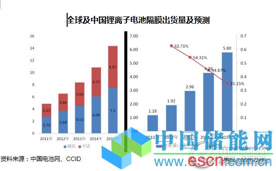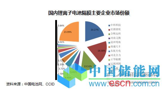 國(guó)內(nèi)市場(chǎng)上,以中科科技、星源材質(zhì)和金輝高科為主的一批國(guó)內(nèi)企業(yè)率先實(shí)現(xiàn)消費(fèi)型電池隔膜的量產(chǎn),2012年以后國(guó)內(nèi)市場(chǎng)開(kāi)始進(jìn)入產(chǎn)能釋放期,相關(guān)生產(chǎn)廠商超過(guò)35家。但是在高端的動(dòng)力電池隔膜領(lǐng)域,外資企業(yè)仍占?jí)艛嗟匚?,?guó)內(nèi)企業(yè)出貨量份額不足10%。盡管我國(guó)過(guò)去幾年中在隔膜生產(chǎn)上投入了大量資金,但受制于技術(shù)和設(shè)備因素,依然沒(méi)有實(shí)現(xiàn)高端產(chǎn)品的突破,反而造成當(dāng)前中低端市場(chǎng)產(chǎn)能過(guò)剩、價(jià)格戰(zhàn)頻發(fā)的情況。