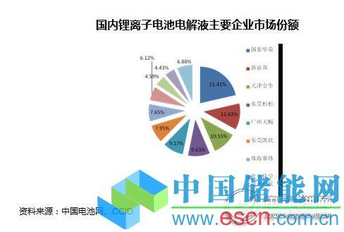 電解液核心六氟磷酸鋰方面,我國(guó)企業(yè)已經(jīng)實(shí)現(xiàn)了技術(shù)突破,擁有核心技術(shù)及量產(chǎn)能力,為電解液的發(fā)展提供良好空間。目前,國(guó)內(nèi)具備獨(dú)立生產(chǎn)六氟磷酸鋰能力的多家企業(yè)都在積極擴(kuò)大產(chǎn)能,龍頭企業(yè)多氟多已于2014年投產(chǎn)2,000噸電解質(zhì)生產(chǎn)線(xiàn),九九久也已建成投產(chǎn)400噸的電解質(zhì)生產(chǎn)線(xiàn),新增1,600噸產(chǎn)能生產(chǎn)線(xiàn)也在建設(shè)中。