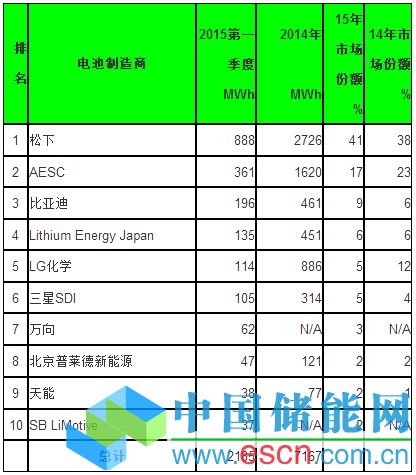 中國儲能網(wǎng)訊:2015年第一季度,面對持續(xù)走高的全球電動汽車市場,各大電動乘用車電池生產(chǎn)商也加足馬力,根據(jù)不同品牌車型受追捧的程度不同,松下依舊保持獨大地位,比亞迪的市場份額則從6%上升到9%,擠進前三名。
