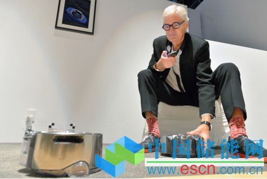 戴森公司創(chuàng)始人兼董事長(zhǎng)詹姆斯·戴森在東京展示機(jī)器人吸塵器“戴森360 Eye”