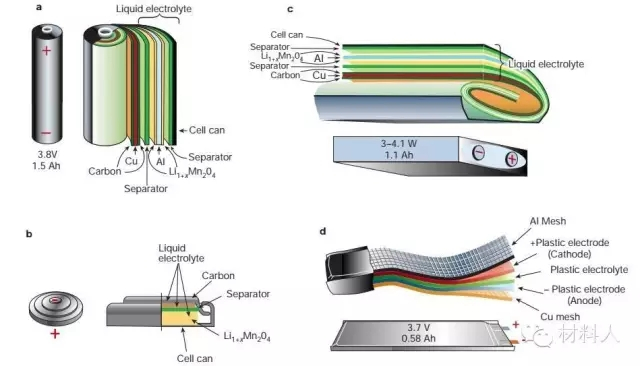 圖1不同種類的鋰離子電池