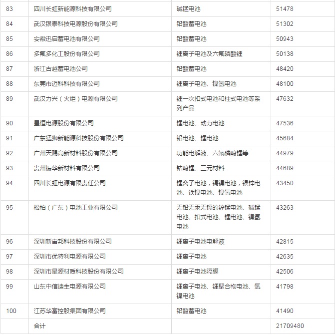 2015年中國電池行業(yè)百強(qiáng)企業(yè)名單