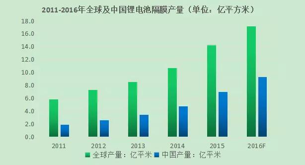 中國(guó)儲(chǔ)能網(wǎng)訊:受鋰電池市場(chǎng)快速發(fā)展影響,全球鋰電池隔膜市場(chǎng)快速增長(zhǎng),2015年,全球鋰電池隔膜產(chǎn)量約為14.2億平方米,較上年同比增長(zhǎng)33.1%。受國(guó)內(nèi)新能源汽車市場(chǎng)繼續(xù)爆發(fā),動(dòng)力鋰電池出貨激增影響,2015年中國(guó)鋰電池隔膜市場(chǎng)也取得快速發(fā)展。鋰電大數(shù)據(jù)調(diào)研數(shù)據(jù)顯示,2015年中國(guó)鋰離子電池隔膜企業(yè)產(chǎn)量為6.98億平方米,同比增長(zhǎng)48.89%;2015年中國(guó)鋰電池隔膜產(chǎn)值26.53億元,同比增長(zhǎng)57.67%。2016年上半年,全球鋰電池隔膜產(chǎn)量為7.9億平米,同比增長(zhǎng)20.8%;中國(guó)鋰電池隔膜產(chǎn)量為4.0億平米,同比增長(zhǎng)31.6%。