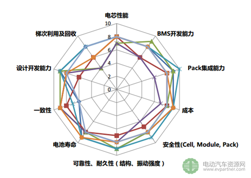 從設(shè)計開發(fā)能力、性能、成本、壽命、安全、一致性、梯次利用及回收等10個維度對電池系統(tǒng)進(jìn)行嚴(yán)格評估。找出薄弱環(huán)節(jié),重點提升。