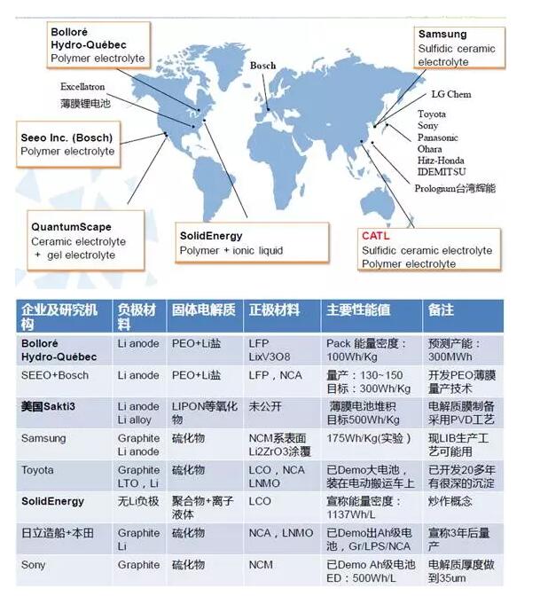 全球全固態(tài)電池企業(yè)研發(fā)的分布圖