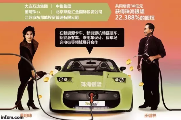 最大手筆的一次增資正是在格力電器收購(gòu)終止后,董明珠以個(gè)人身份聯(lián)手王健林執(zhí)掌的大連萬(wàn)達(dá)集團(tuán)、劉強(qiáng)東麾下的宿遷涵邦投資管理有限公司、中集集團(tuán)以及北京燕趙匯金國(guó)際投資有限責(zé)任公司(以下簡(jiǎn)稱(chēng)北京燕趙匯金),共同為珠海銀隆增資30億元。