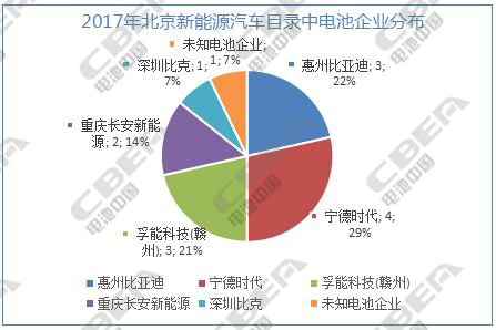 從表中我們可看出,目錄車(chē)型所配電池的生產(chǎn)企業(yè)分布如下:寧德時(shí)代4款,占比29%,是進(jìn)入目錄數(shù)量最多的一家電池企業(yè);惠州比亞迪和孚能科技(贛州)各3款,各占22%;重慶長(zhǎng)安新能源2款,占比14%;深圳比克和另一家尚未查到信息的電池企業(yè)各1款,各占7%??梢?jiàn),寧德時(shí)代、惠州比亞迪和孚能科技(贛州)這三家電池企業(yè)將是北京市場(chǎng)的大贏家。