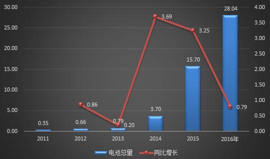 前瞻產(chǎn)業(yè)研究院發(fā)布的《動(dòng)力電池PACK行業(yè)發(fā)展前景預(yù)測(cè)與投資戰(zhàn)略規(guī)劃分析報(bào)告》統(tǒng)計(jì)顯示,2016年中國(guó)汽車動(dòng)力電池產(chǎn)量30.8GWh,同比增長(zhǎng)82%。增長(zhǎng)原因有1、2016全國(guó)新能源汽車產(chǎn)量同比增速37%,2、2015年底生產(chǎn)的部分整車需補(bǔ)裝電池,3、2009-2013年生產(chǎn)的部分整車需要換裝電池。