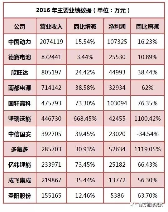 綜合來看,2016年鋰電池上市企業(yè)在營業(yè)收入和凈利潤上普遍實現了兩位數的增長。