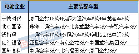 配置車型數(shù)量排名前五的動力電池企業(yè)