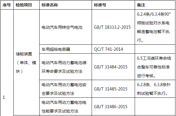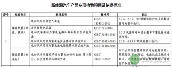 新規(guī)定要求的新能源汽車產(chǎn)品專項檢驗?zāi)夸浿?,與動力電池相關(guān)的檢驗項目如下: