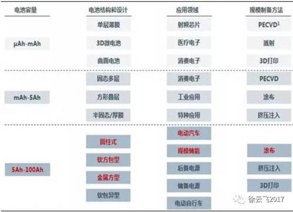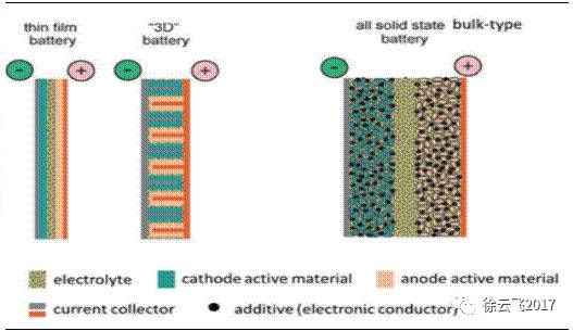 圖4:全固態(tài)鋰電池結(jié)構(gòu):薄膜型(左1和左2)和大容量型(右1)