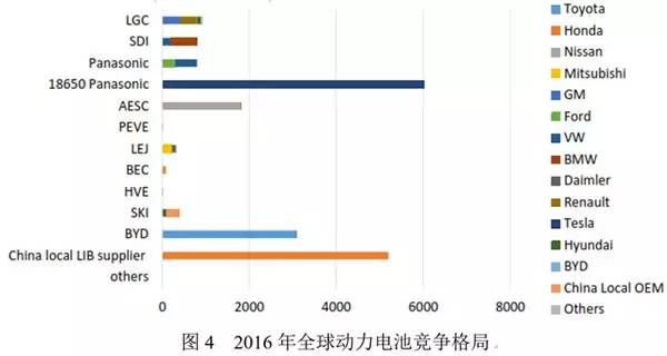 目前全球動力電池配套的配套供應(yīng)商主要集中于日、韓、中三國,2016年鋰動力電池競爭格局為:日系、韓系新能源汽車配套日韓主機廠控股或合資合作的動力電池企業(yè)產(chǎn)品;美系新能源汽車配套日韓動力電池企業(yè)產(chǎn)品,其中特斯拉正在籌建自己的超級動力電池工廠;歐系新能源汽車配套日、韓、中三國領(lǐng)先的動力電池企業(yè)產(chǎn)品。這些整車廠的純電動與插電式混動汽車都至少選擇了2~3家動力電池供應(yīng)商。